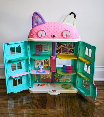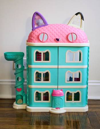 Step into Gabby’s magical world with this large, colorful 4-story dollhouse inspired by the hit Netflix series Gabby’s Dollhouse. Features opening double doors, a working cat-ear roof, elevator, spiral slide, and vibrant themed rooms. Perfect for pretend play and collectible figure adventures!