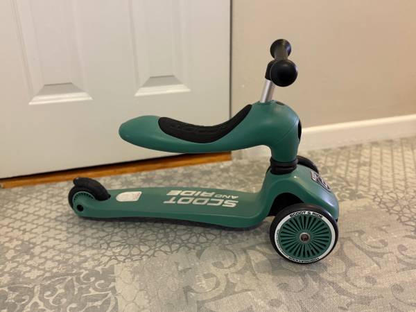 Lightly used kids scooter, great for ages 1-5 years Scoot & Ride 2-in-1 Ride-On & Stand Scooter, Highwaykick Color: Forest green