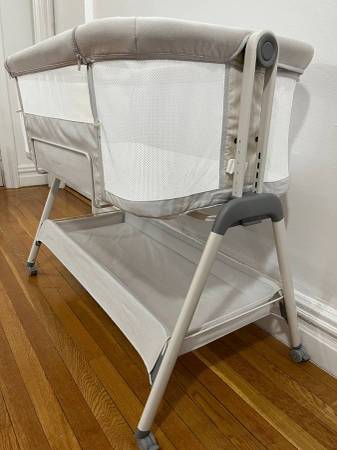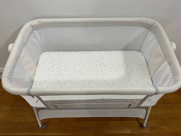 ANGELBLISS baby portable bassinet bedside sleeper crib. With locking wheels and adjustable height. Includes bassinet, mattress, waterproof mattress cover, and 2x breathable sheets. Bassinet and...