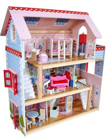 KidKraft three story wooden doll house for 5” dolls includes all furniture and a wooden doll family. Dimensions are 25x13x28. Retails for over $100 when including the dolls: https://a.co/d/dDrUZsq