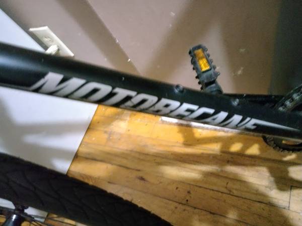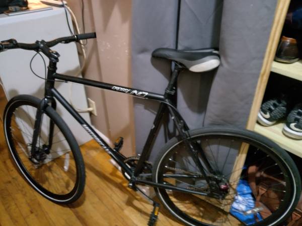 Hybrid mountain/Street bike. One speed. New tires. Has Horn .. (Beep Beep Hi!)...and back bike light. Brakes are tight. Wide, Bullhorn handlebars. Seat is not adjustable. It' is tough, strong, and...