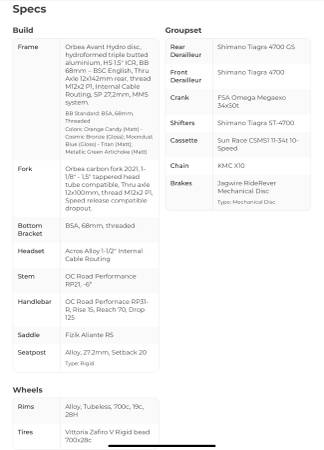 ORBEA AVANT H40 ROAD BIKE IN ORANGE CANDY/COSMIC BRONZE