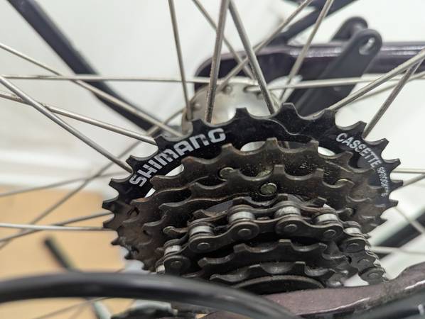 7x3 speed aluminum commuter bike. Rear rack, rear mirror and kickstand installed. Shimano rim brakes. Mavic CXP 10 rims. Made in USA. Fits someone from 5'3" to 5'5"