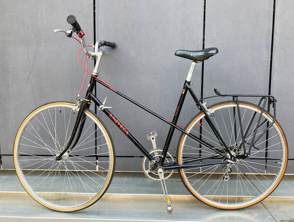 A great looking road/city bicycle, made in Japan around 1980. New brakes with red cables, handlebar grips, rack, chain, tires and more.