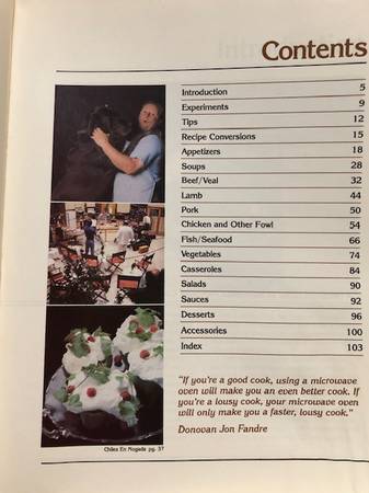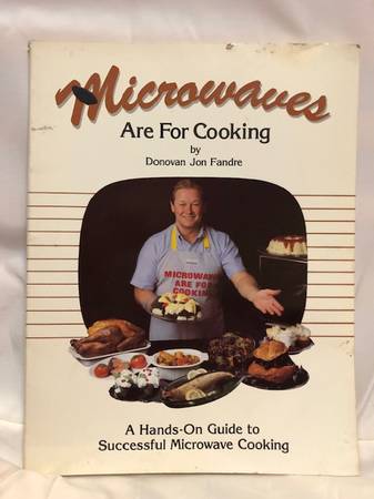 1983 Microwaves are for Cooking by Donovan Jon Fandre (1st edition) is a hands-on guide to successful microwaving. It has 105 pages which are all intact except for one back page. The pages are slightly yellow and there are some marks on and in the book.