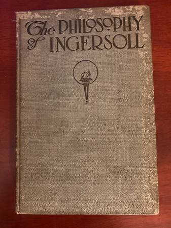 The PHILOSOPHY OF INGERSOLL: To Plow is to Pray, To Plant is to Prophesy, and the Harvest Answers and Fulfils. Edited and Arranged by Vere Goldthwaite. Published by Paul Elder and Company, 1913. Second Edition. Hardcover, tan cloth over boards. 117 pages, Deckel edges. Very Good condition. Gilt on front cover darkened but fully legible. Title on spine illegible. Cloth cover has markings from previous book cover, no residue remaining. Interior clean.