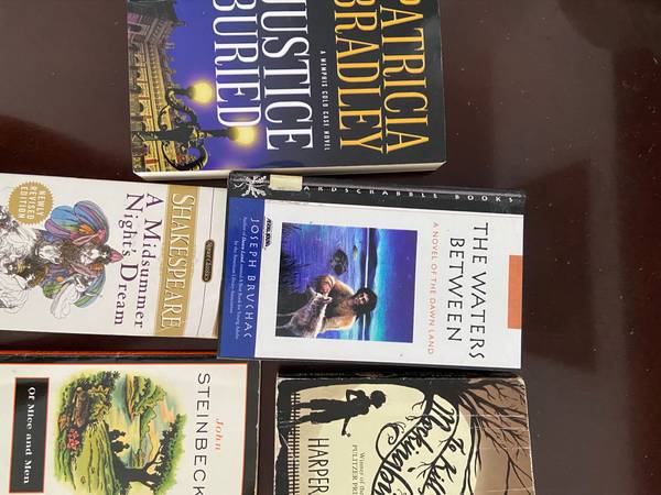 1. A Midsummer Night’s Dream 2. To Kill a Mockingbird 3. Of Mice and Men 4. The Waters Between 5. Justice Buried