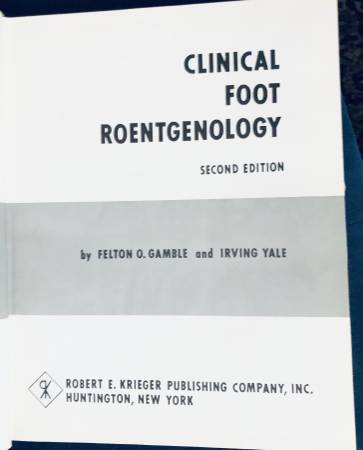 Clinical Foot Roentgenology second edition hard cover by Felton O. Gamble and Irving Yale