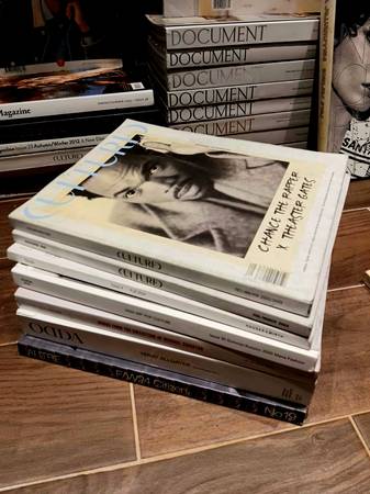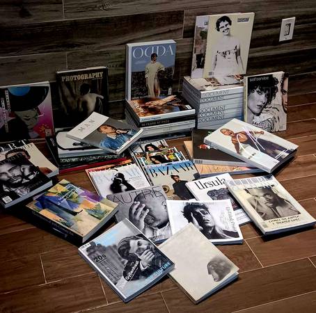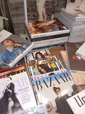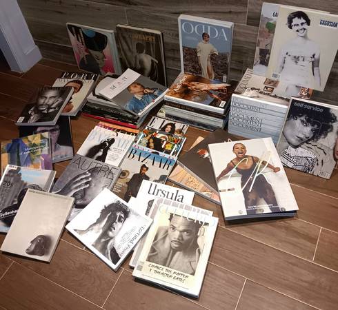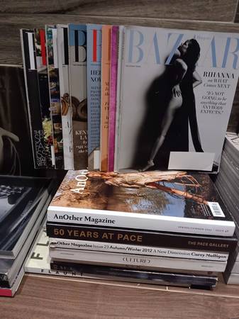 Up for sale is alot of random magazines and books : Fashion , Art , Photography , Culture / Document, Self Service , Elle , Bazaar , Cultured , A Magazine , Oida , CR Fashion Book , Another , Another Man , Flaunt , Ursula ... and others , as shown . Also , Sotheby's - Christie's catalogs ...."EVERYTHING MUST GO" !!! ..this weekend / 17th - 19th .The more you buy , the more you'll save .(Range $3 - $20) Bulk Deals Made