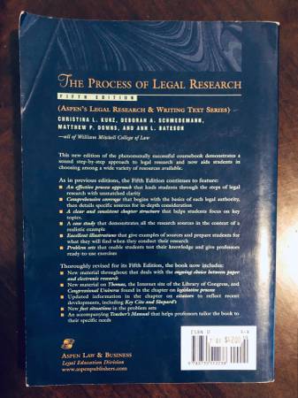 Cash Only The Process of Legal Research, 5th Edition (Legal Research and Writing) paperback by Kunz, Christina L.; Schmedemann, Deborah A.; Downs, Matthew P 2000, Aspen Law & Business, Legal...
