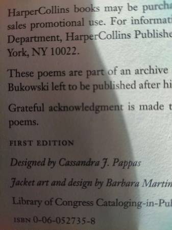 Charles Bukoswki 1st Edition "Sifting Through The Madness" - $25 (Midtown)
