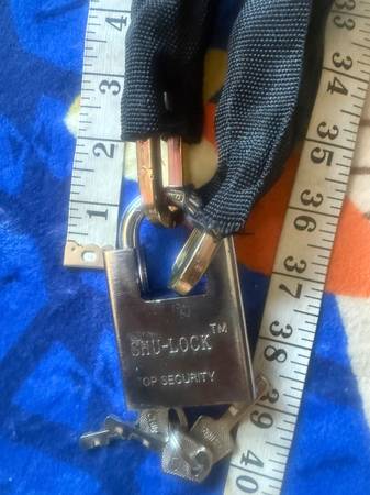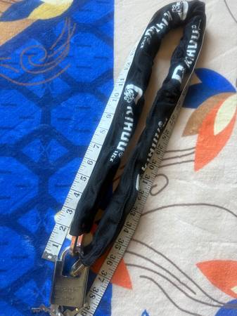 AS THE HEAD LINE THE CHAIN IS HARDENED VERY SECURED ONLY $20 36" LONG 7 MM THICK CHAIN 3 KEYS AND MANY OTHER ITEMS LIKE BELLS LIGHTS ETC CAN MEET OUTSIDE PUBLICK PLACE
