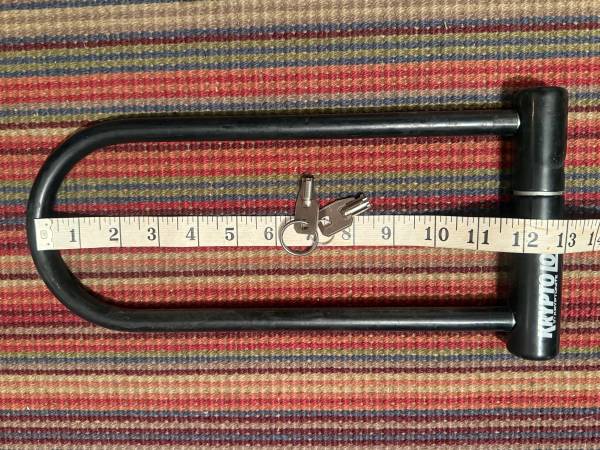 ALSO LONG ARMS KRYPTONITE U LOCK ARMS ARE OVER 13" LONG WITH 2 KEYS LIKE NEW SHAPE $30
