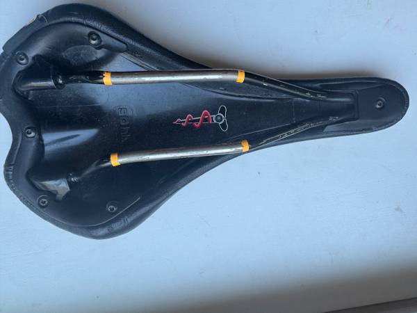 Saddle in very good condition. Two scuff marks on the leather( see photos), rails show wear. I replaced it in 2022 with another SQlab model. Padding is in excellent condition.