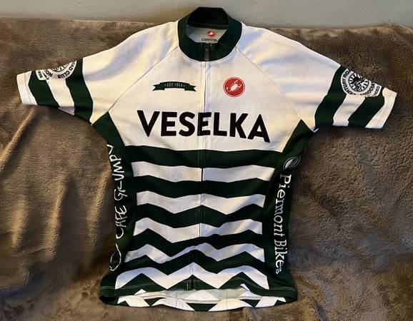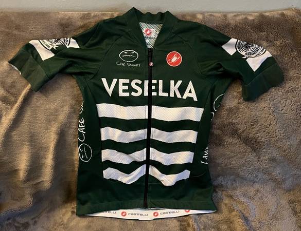 Ostroy women’s bib shorts size small. $60 Castelli jersey # 1(Green/white) size medium. $40 Castelli jersey #2(White/green) size small. $40 2 Castelli aero style jerseys. $70 each Hincapie maroon...