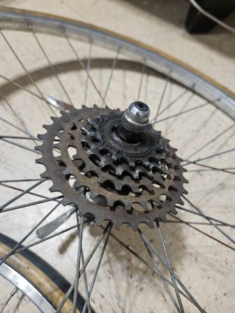Also might need some inner tubes. The rims measure at 27x1¼. Front quick release skewer works mostly fine but the spring is a bit worn down.