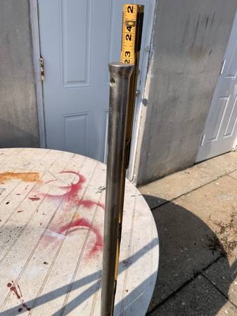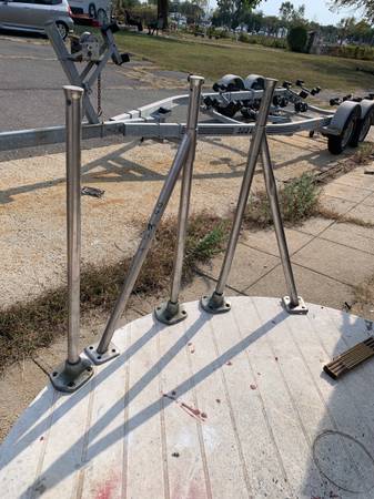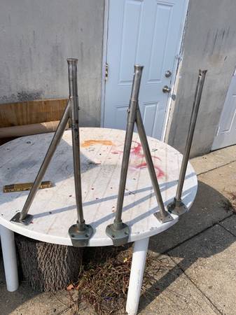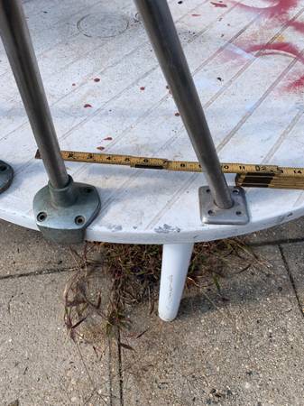 3 stainless steel lifeline stanchions, 22 3/4 tall, feet approx. 11” apart, large feet holes 2” centers, small feet 2”.