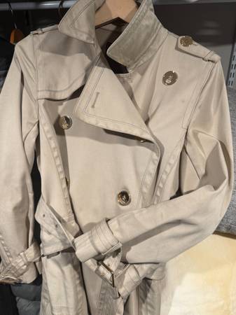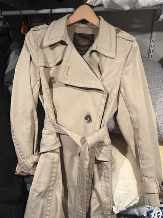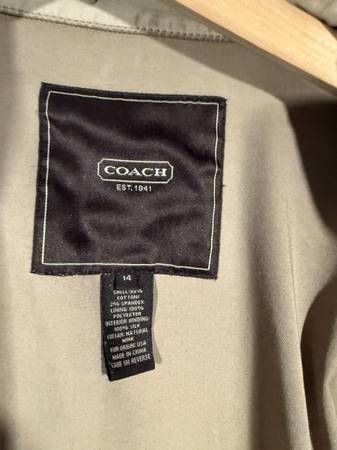 Coach Vintage Trench, $1200 raincoat. Not the junk they sell today. beautifully made, handstitched design. Shining gold buttons. Size 14 -fits snug -gorgeous--look like a million