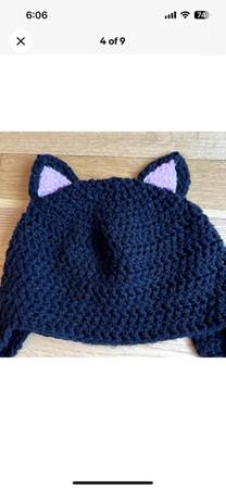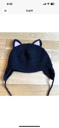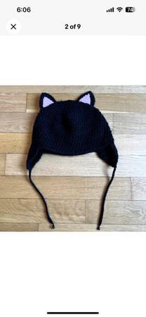 Black knit beanie with pink cat ears. One side of hat is all black, the other is black and the ears are pink. Handmade, purchased at upscale boutique Very adjustable/flexible with sizing Very soft...