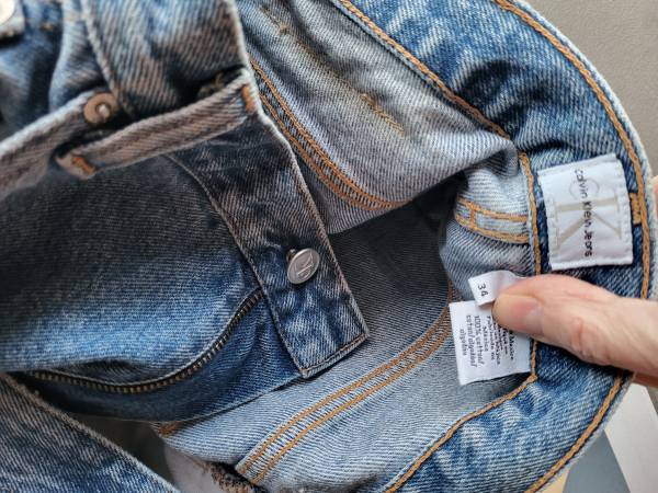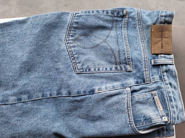 Excellent condition. Classic Calvin Klein blue jeans. 34" waist, 30" length. Zipper front. $15 cash takes it. Nice! ***You must leave a working phone number for a reply. NO EXCEPTIONS.***