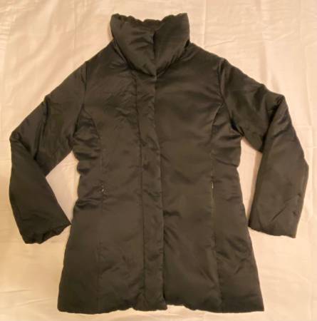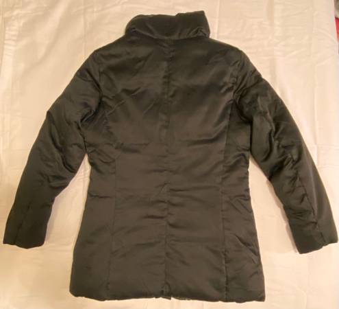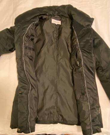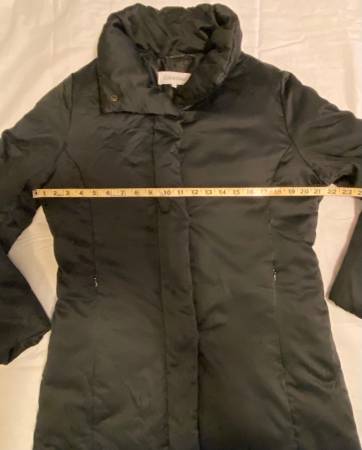 This Calvin Klein Duck Down Feather Jacket in black is perfect for women in size small. It features a mid-length design with long sleeves and a zip closure. The jacket is ideal for various occasions including travel, casual wear, workwear, and business attire. Made with polyester outer shell material and insulated with down, this toasty jacket is lightweight, windproof, and breathable, making it ideal for the winter, fall, and spring seasons. Additionally, it has a collared neckline, inner and zipped pockets, and is machine washable for easy care. Showcasing the signature Calvin Klein logo, this jacket combines classic style with modern functionality.