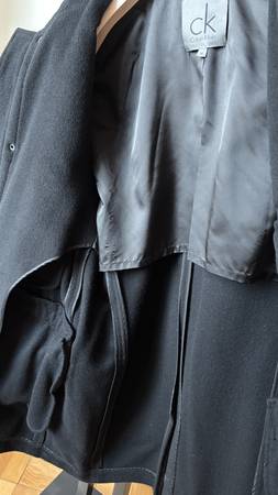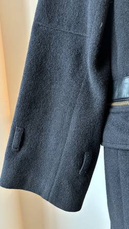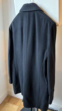 The jacket has been worn only a couple of times and is in an excellent condition. It has been professionally dry cleaned and stored. Nice hand warmer pockets. The "tack stitching" on the pockets is still intact.