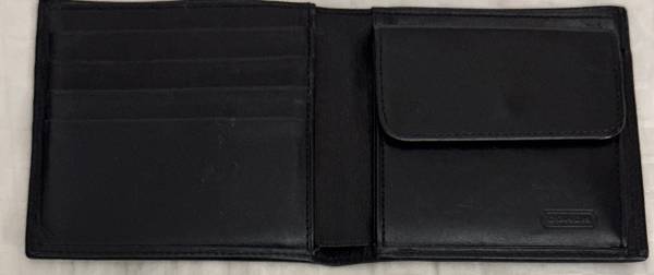 Inside snapped change compartment, six credit card compartments,both side have interior spaces for papers, etc.