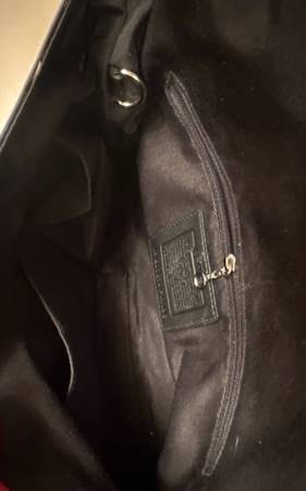 - Coach leather bag. Strap is adjustable and can be worn as a shoulder bag or a side bag. 12" wise x 8" deep x 4" at deepest end.