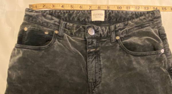 The CLOSED Italy Velvet Flared Boot Blue Jeans for women in size 28 are made of super soft cotton in a solid blue-gray slate color. These stylish jeans feature a zip and button closure, a regular fit, and a flared style. The velour fabric wash adds a touch of luxury, while the 5-pocket design adds practicality. Perfect for all seasons, these jeans are easy to care for, lightweight, comfortable, and breathable, making them a versatile and fashionable choice for any wardrobe.