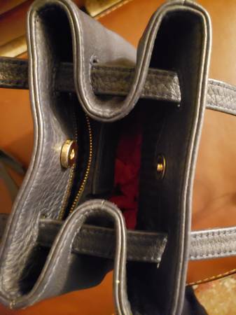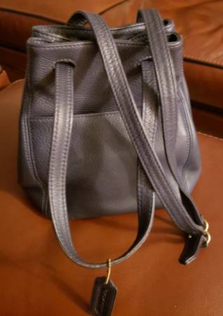 Beautiful..rare find Navy blue leather shoulder bag Like new 2 outside pockets Magnetic closure Approx 8x10ht