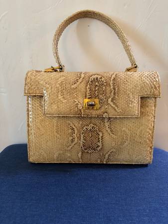 Deal! Vintage 1980s Argentina Snakeskin Structure Top Handle Purse -...