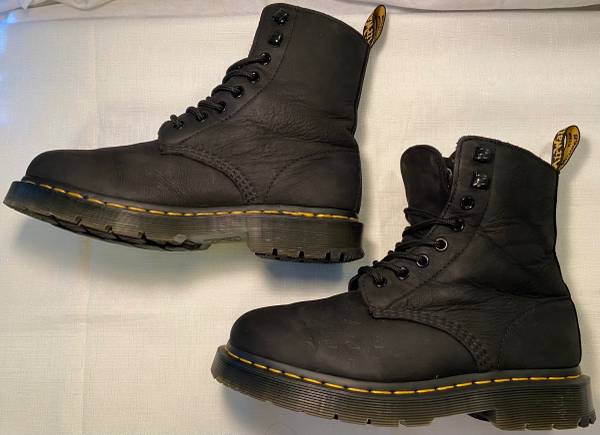 The Dr. Marten 1460 Pascal WG Suede Shearling Boot in black is a stylish and versatile option for both men and women. With a lace-up closure and round toe shape, these ankle boots feature a durable suede outsole and sheepskin lining for added comfort and warmth. Perfect for fall, winter, and spring, these boots are ideal for casual wear, workwear, and even travel. The limited-edition design includes eyelet accents and the signature Dr. Martens logo, making them a standout choice for those looking for both fashion and function in their footwear.