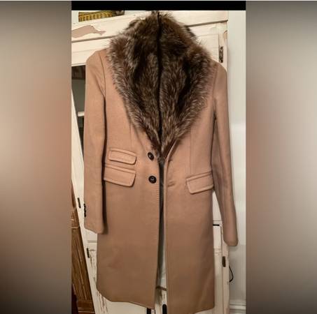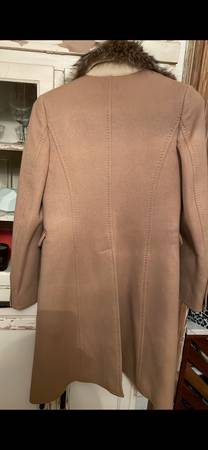 Beautiful tan coat handmade with fur collar. Size 40. Likely wool and cashmere. Come try it on! Text if interested.