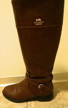 Fabulous and very stylish women's genuine leather mahogany boots by Coach! Size 7.5 Highly recommended! FREE PARKING while you pick up.