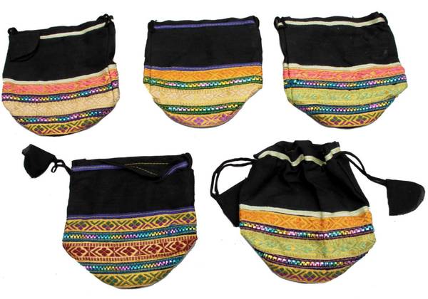 GROUP OF FIVE (5) BEAUTIFUL GIFT POUCHES FROM BALOCHISTAN PROVINCE, PAKISTAN All in very good condition Each approx. 5" tall x 3 2/8" diagonal Available for pickup only 78th Street / 1st Avenue