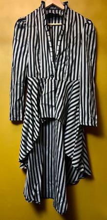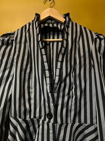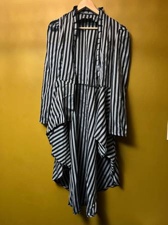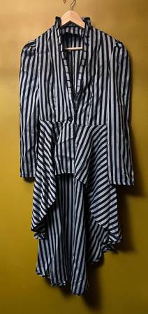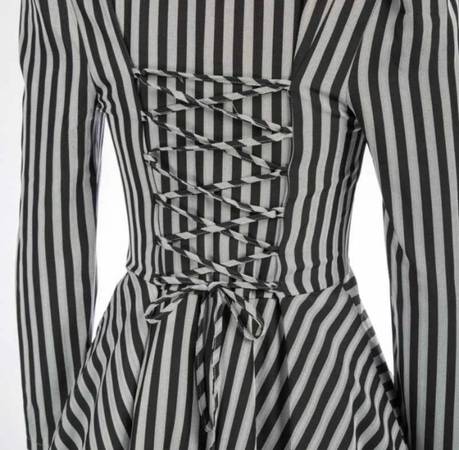 This is a Scarlet Darkness women's gothic steampunk striped coat Steampunk Long Striped Jacket Renaissance Victorian Gothic Blazer Jacket Coat small