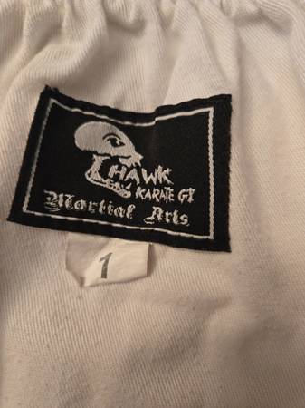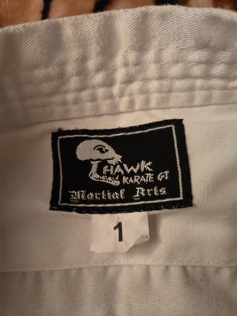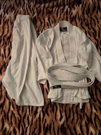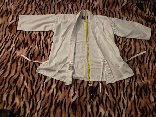 For approx 4.5-5.2 feet tall 70- 90 lbs (size 1) Barely used but very good shape. Top, pants, and white belt.