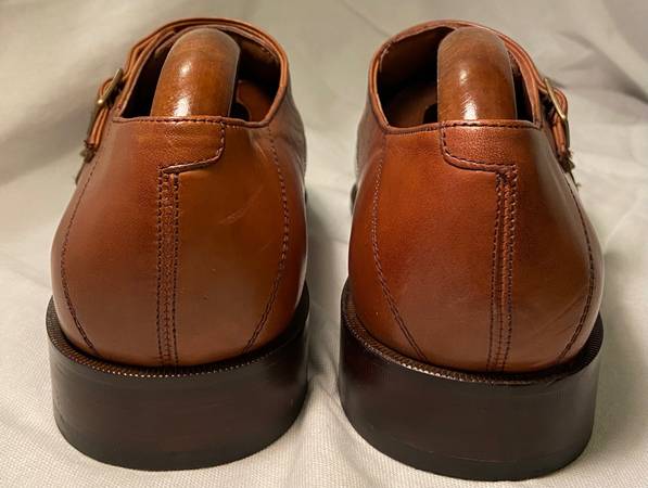 The Johnston Murphy Double Monk Strap Loafers Dress Shoes in brown leather are a stylish and sophisticated choice for men. With an almond toe shape and adjustable buckle closure, these shoes offer both comfort and style. The monk strap accents add a touch of hipster flair, making them a versatile option for various occasions such as going out, dressy events, or even a retro-inspired look. Made with high-quality leather and featuring a leather lining and outsole, these shoes are a timeless addition to any wardrobe.