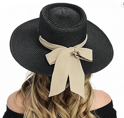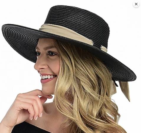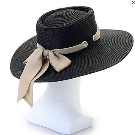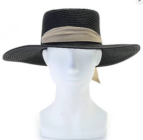 Kate & Mallory Wide brimmed black straw hat with sash-NWT - clothing...