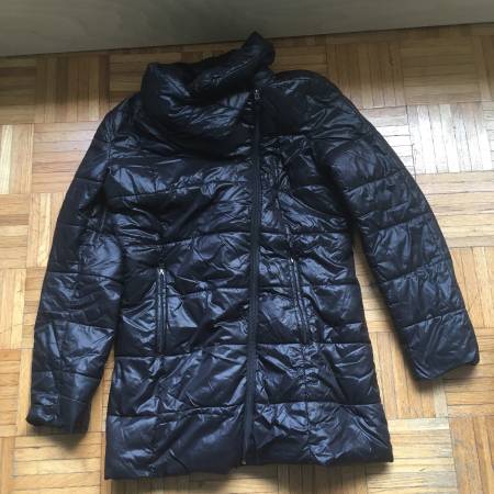 Kenneth Cole puffer zip up fold over collar 2 zipper pockets sz L black coat jacket. Cash only. Pick up only. Midtown West.