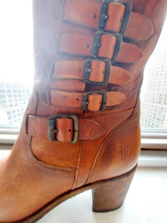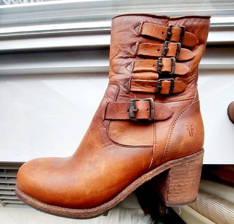 Brand new Frye boots with tags, Great looking leather boots Has inside zippers for easy on, easy off. Heel high is 3 Inches. Size 8. Feel free to contact me with any question. Thanks.