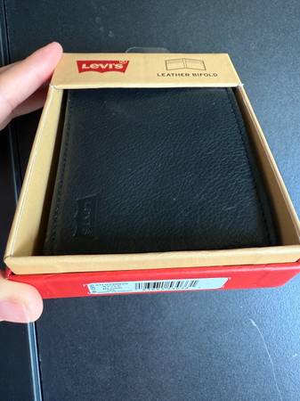 I have a Dockers black leather bifold wallet for sale. It's in new condition and comes with its original box. It's a stylish and practical accessory for everyday use. Levi’s New. black 28.
