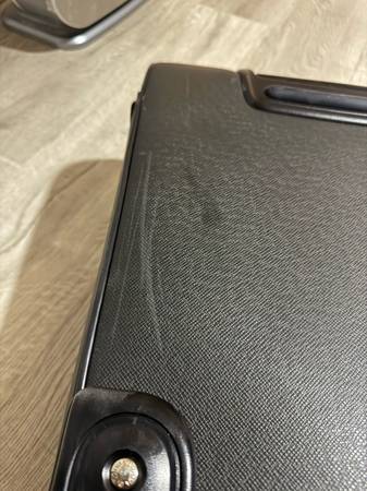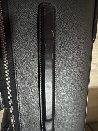 There is one noticeable leather damage to the front, it might come off with professional leather treatment, some scratches and wear to the bottom/corner/handle. Please review the photos and videos carefully for the condition of the bag.