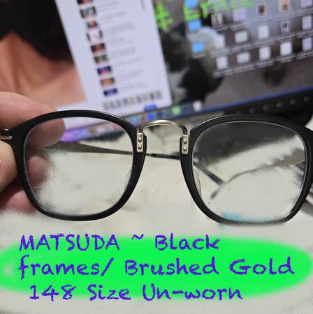 I have 6 Total Glasses..... they are: { 5 un -worn Matsuda eyeglass frames and One Giorgio ARMANI frames.. ready for your prescriptions. I have not worn these.. Just don't suit me after I bought them.. for over $700 Brand New. temple - to templ measure is 5 1/4" inches across on all.. 140 size.. I don't exchange phone numbers.. and Just CASH only; 280 for all.. No venmo.. No paypal no checks.. just tell me what day and time you'd like to meet perhaps Starbucks @ 23rd st and Eighth avenue Manhattan. thanks L again; 5 Matsuda frames and One Giorgio Armani; see pics: