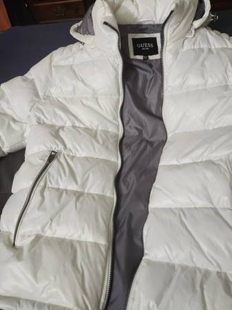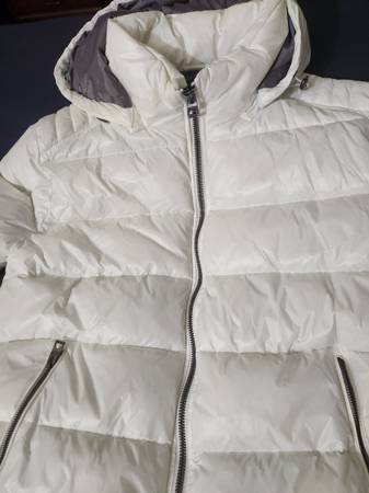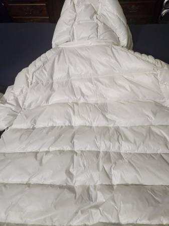 Brand new all white Mens Midi Puffed coat with hood. Cost is negotiable. Cash Only.