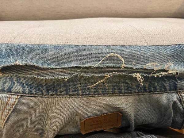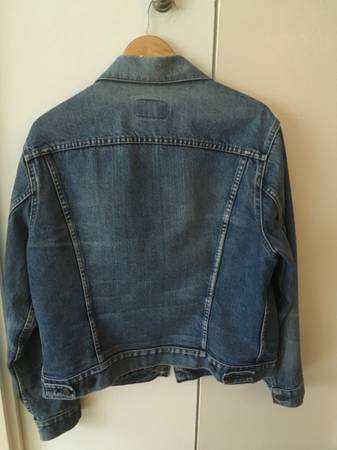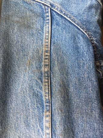 Vintage mens Levis denim jacket, Size 44, some staining and collar needs mending, but has a cool broken-in look - $20.