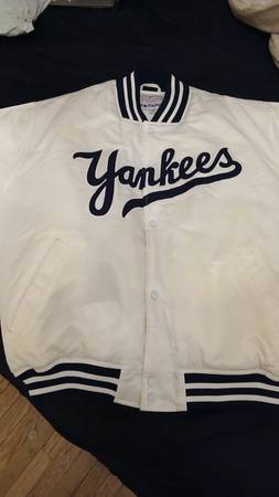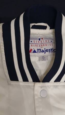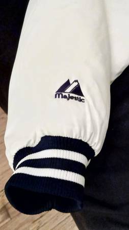 Offically licensed authentic majestic 90's New York Yankee's jacket. This jacket is in excellent condition. It was put away packed in a sealed box in storage for a long time. There are no flaws at all. Made in Korea in XL. Very cool vintage rare piece not so easy to find! this jacket is a classic choice for any Yankee fan or MLB enthusiast.