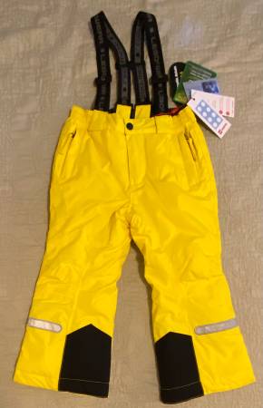 Stay warm and stylish in the cold with these NWT LEGO Wear Kids Size 104 US 4 Snow/Ski Pants. Made from 100% polyester with a bright yellow color, these pants feature a solid pattern and are adorned with reflective accents for safety. With a zip and Velcro closure, elastic waist, and adjustable suspenders, these ski pants are both practical and comfortable for all-day wear. perfect for winter activities like skiing, these waterproof and windproof pants also have zipped pockets for convenience. Machine washable and featuring taped seams, these pants are a must-have for any young winter sports enthusiast.