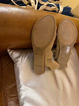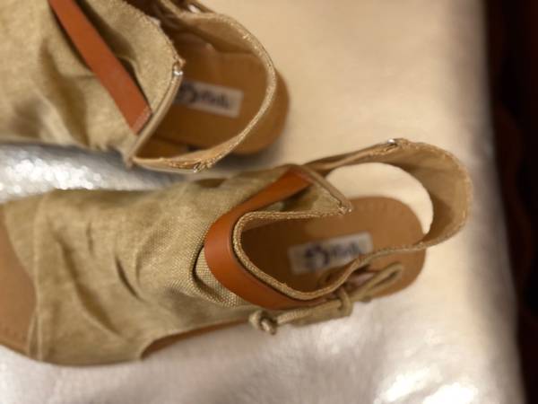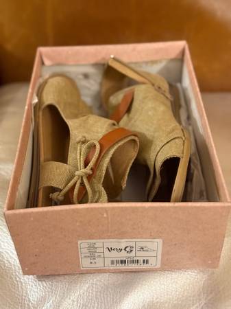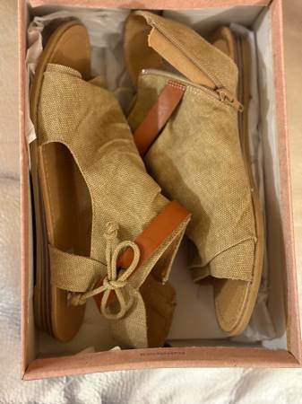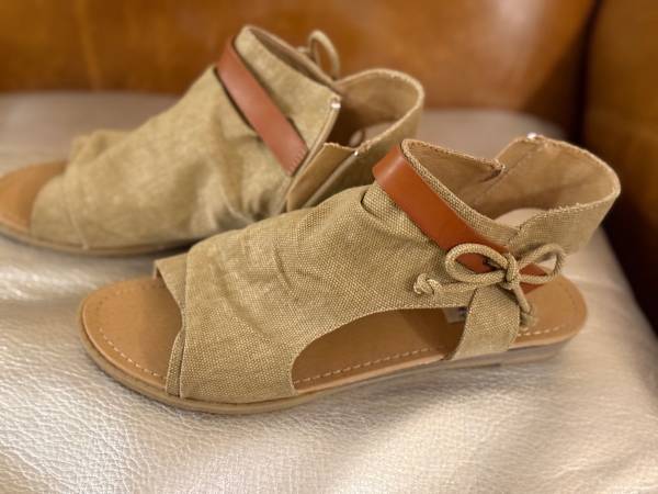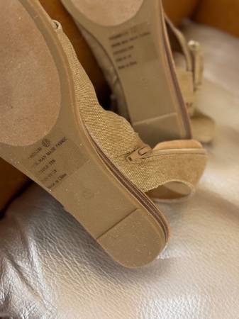 gorgeous canvas fabric sandals with leather accent & zipper Size 8.5 Color : sand Brand : Very G NEW in original box