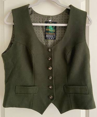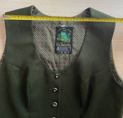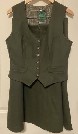 ORIGINAL HAMMER - GEWALKT DACHSTEIN Two-Piece Suit Vest /Skirt Set NEW, WITHOUT TAGS Color: Forest Green Size: Women 44 Material: Pure New Wool MEASUREMENTS: Vest: Length 18" Armpit to armpit 18"...